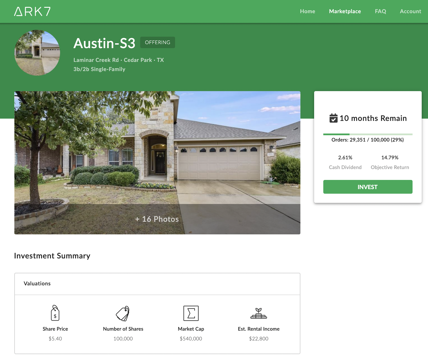 Startups like Ark7 have noticed these obstacles to real estate investing and found ways to capitalize on the high demand of housing. Our team takes care of property management pains for investors, and curates properties in high-demand areas. We also look for homes in close proximity to good schools, parks and amenities. Ark7 offers these properties as fractional shares, allowing investors to diversify their portfolio while leaving the task of property management to professionals.